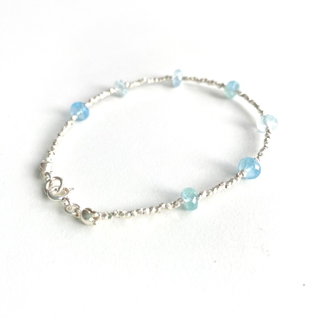 カレンシルバーとアクアマリンのシンプル ブレスレット