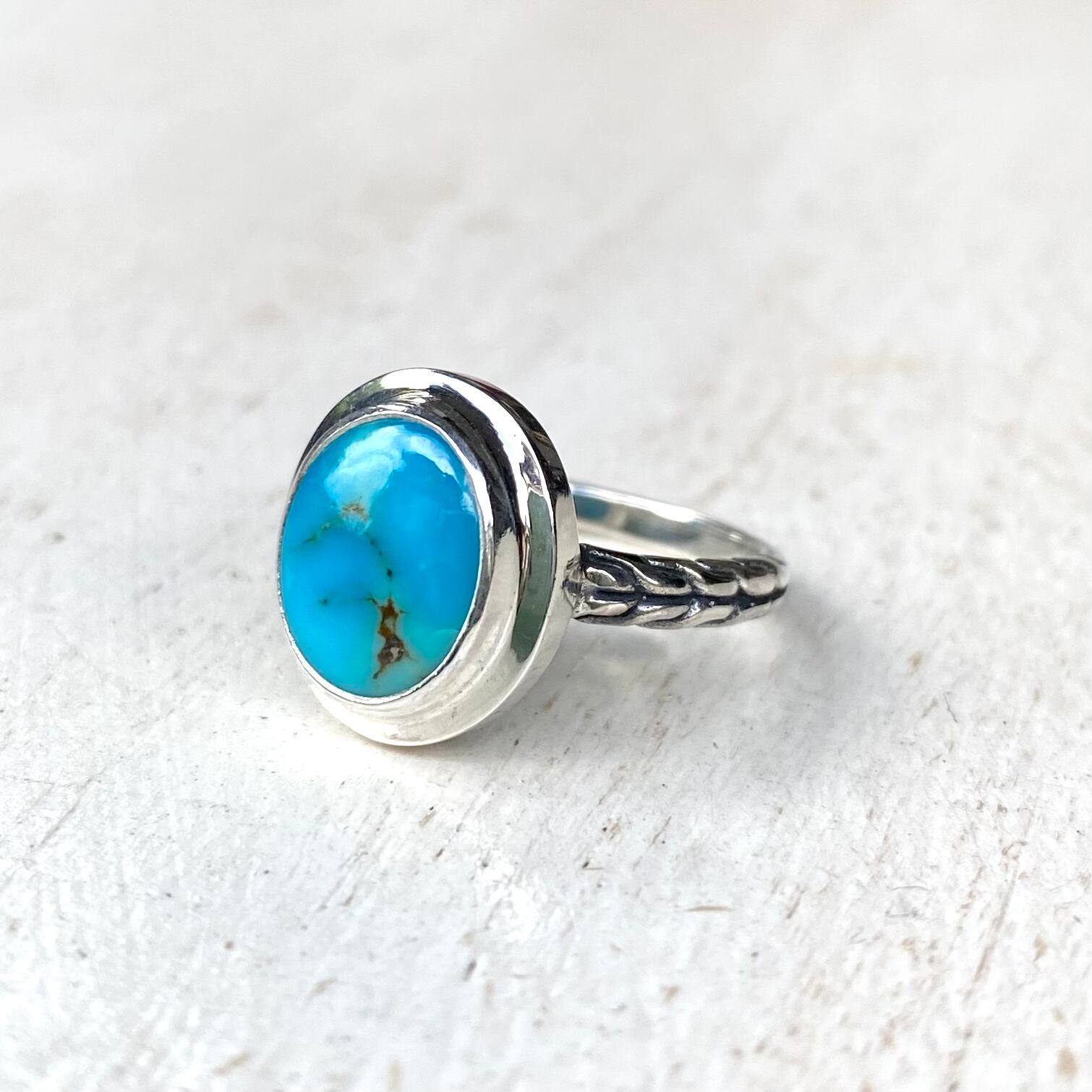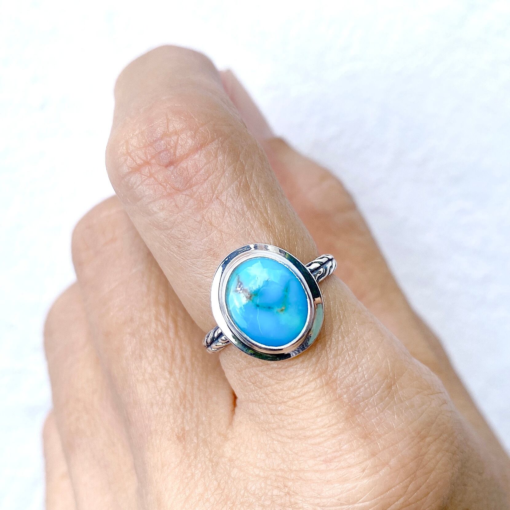 鮮やかな青色ターコイズのサイズ12号リングです。はっきりとしたターコイズブルーが夏の手元を演出してくれます。