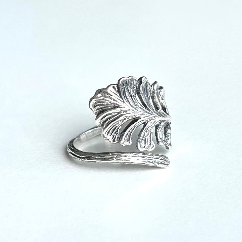 シルバーリーフをくるりと指に巻き付くようにしたサイズ調整していただけるリングです。