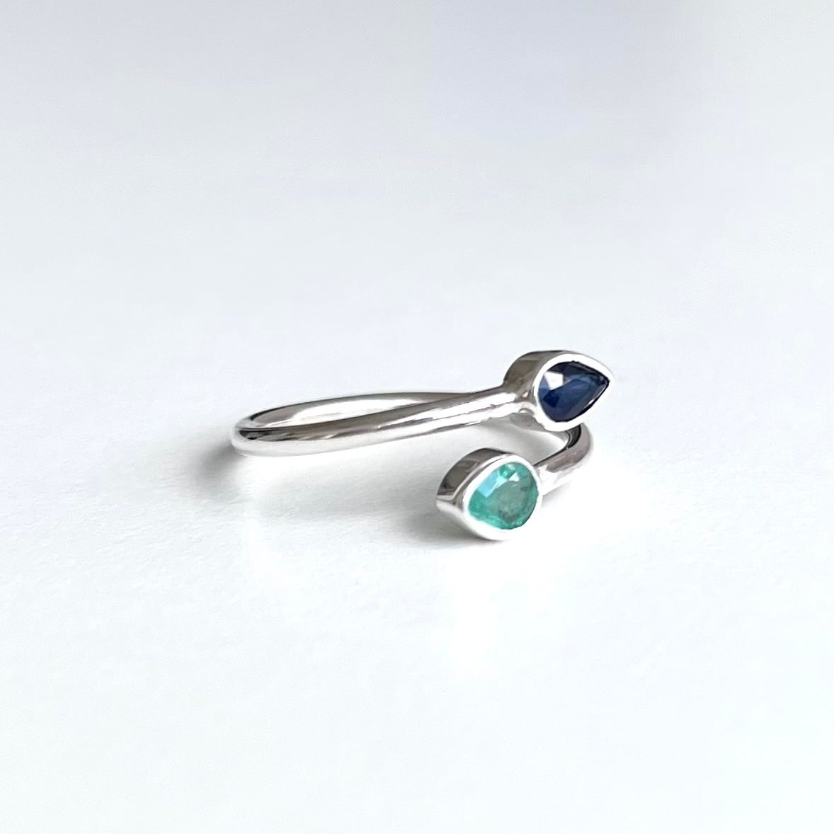 ブルーサファイアとエメラルドのスパイラルリング SV925