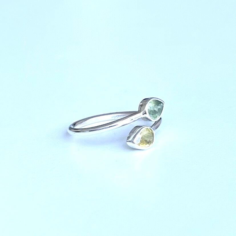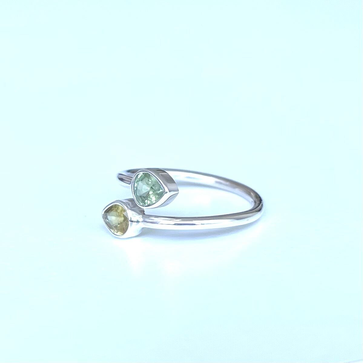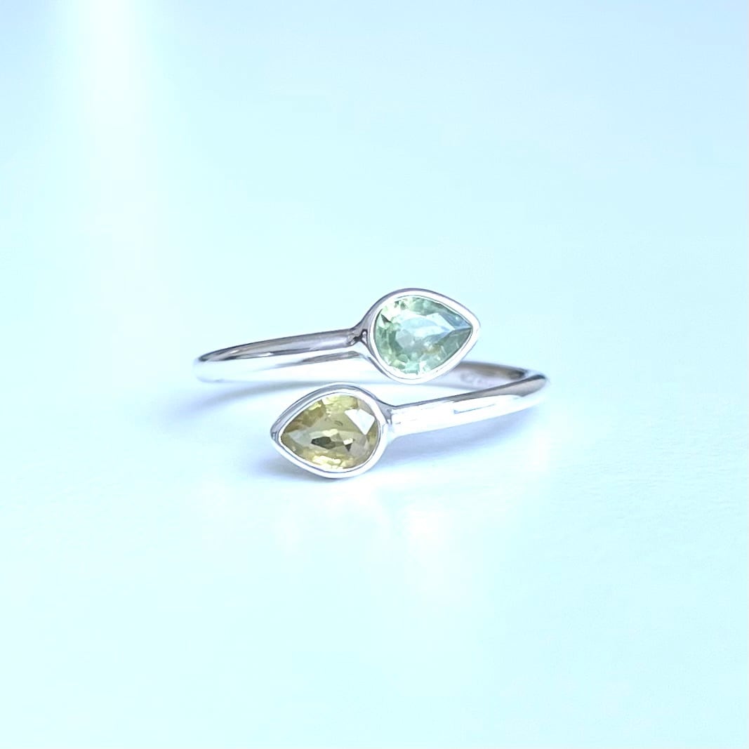 様々な色を展開するミックスカラーサファイアの2色を組み合わせたスパイラルリング。単色のサファイアとは異なる色の組み合わせを楽しんでいただけます。