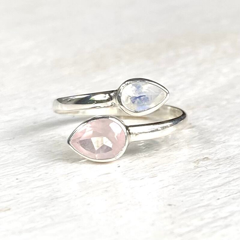 ローズクォーツとレインボームーンストーンのスパイラルリング SV925
