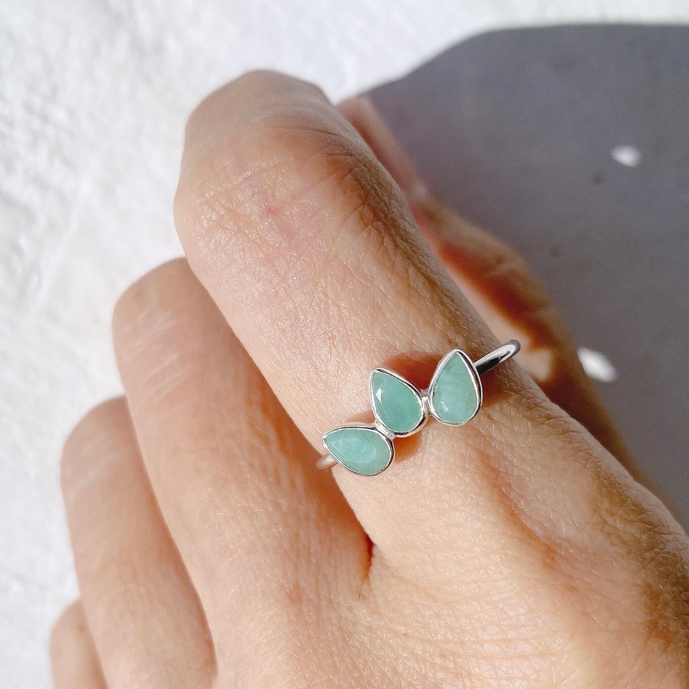 ファセットカットの小粒なエメラルドをロータスの花のかたちに並べたシンプルなリングです。明るいエメラルドグリーンを楽しめます。