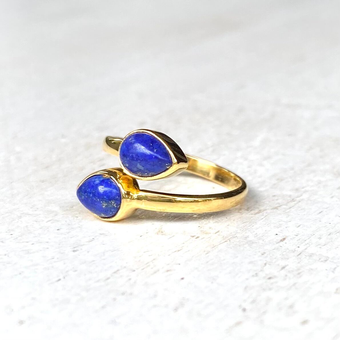 ラピスラズリの深い青とゴールドが華やかなサイズ調整していただけるリングです。